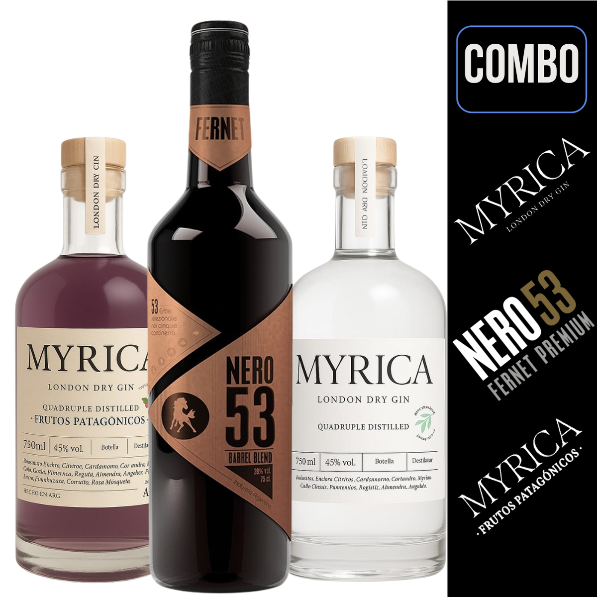 1 BOTELLA MYRICA GIN FRUTOS PATAGONICOS DE 750ML.