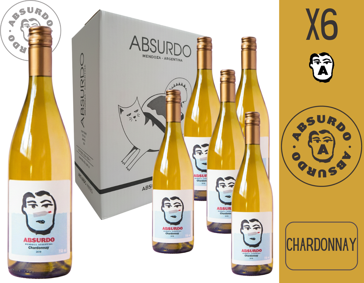 CAJA DE BODEGA ABSURDO CHARDONNAY DE 6 BOTELLAS DE 750ml.